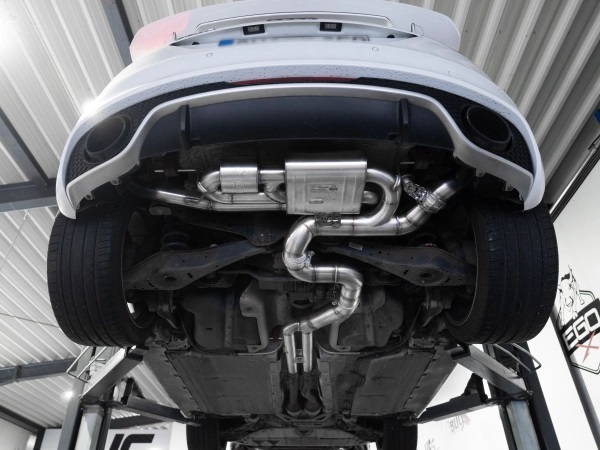 Diese EGO-X Abgasanlage für den Audi TTRS 8J wird im WIG-Schweißverfahren handgefertigt und besteht aus Absorptionsschalldämpfern, ohne Kammern. Der Rohrdurchmesser beträgt 3,5 Zoll (89mm).